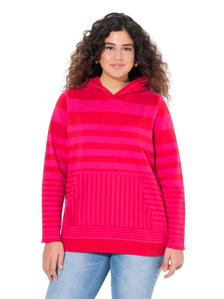 Толстовка прямого кроя из трикотажного полотна в полоску. Капюшон, карман-кенгуру, длинные рукава. Внешний материал: 80% хлопок, 20% полиэстер.