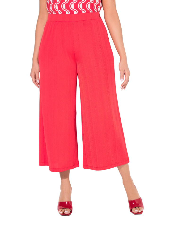 Структурированные брюки-кюлоты длиной примерно до икры. Удобный прямой крой. Модная фактурная ткань с эластичным поясом и боковыми карманами.