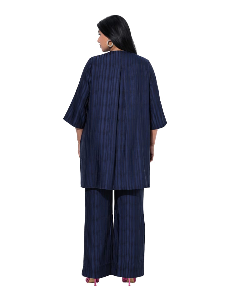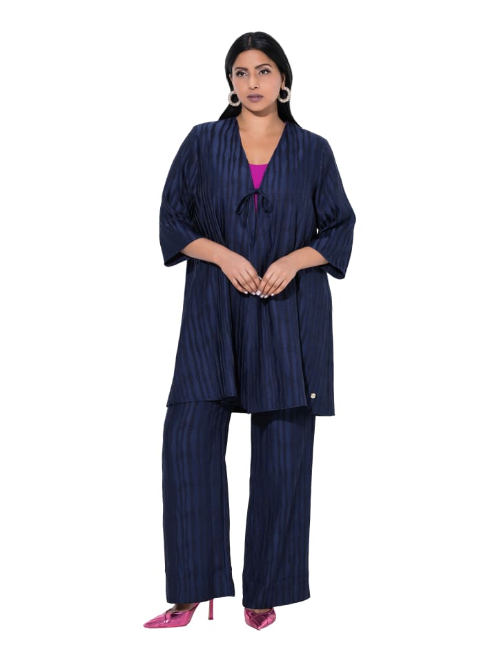Свободный жакет А-силуэта, легко надевается. Современный, структурированный крой. Свободный, свободный крой с V-образным вырезом и складкой сзади. Широкие рукава длиной 3/4.