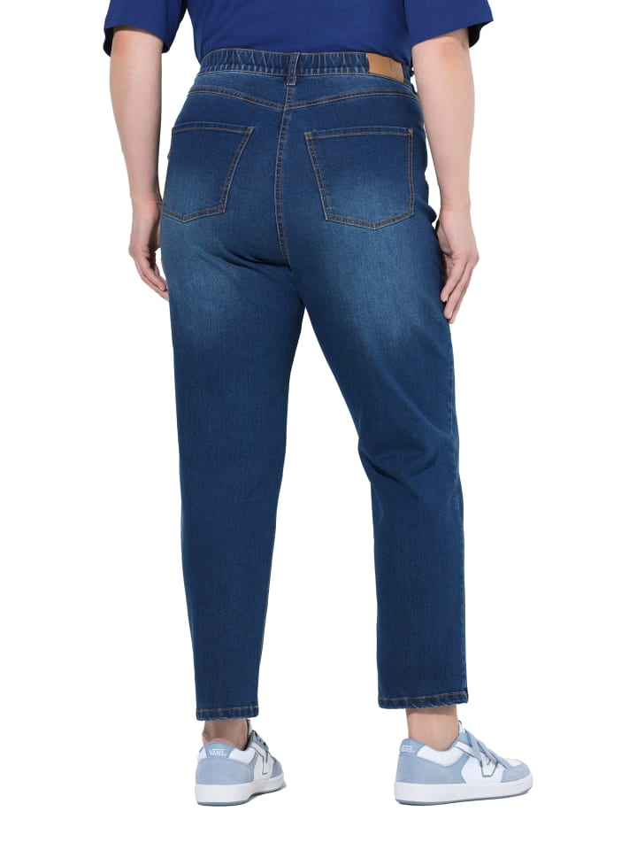 Джинсы mom fit, удобный крой mom fit, из приятного эластичного денима. Пять карманов, удобный пояс со шлевками для ремня, застежкой на пуговицу и молнию.