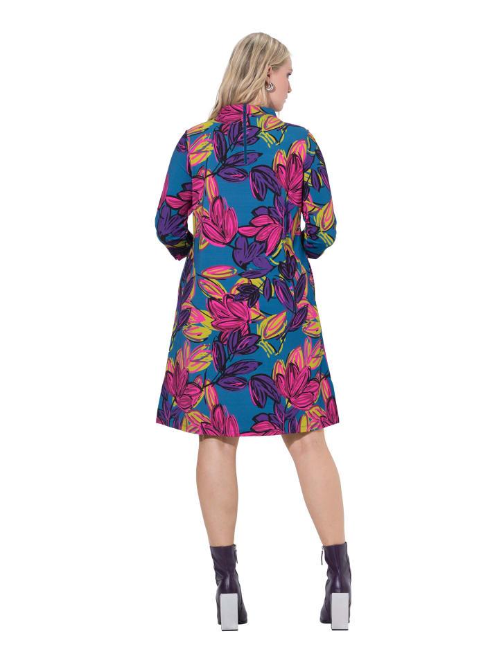 Платье Punto di Roma, удобного кроя, из мягкого высококачественного трикотажа с ярким цветочным рисунком. Воротник-стойка, рукава длиной 3/4 с разрезами. Карманы в боковых швах и разрезы по бокам для большего комфорта. Внешний материал: 82% вискоза, 16% полиамид, 2% эластан.