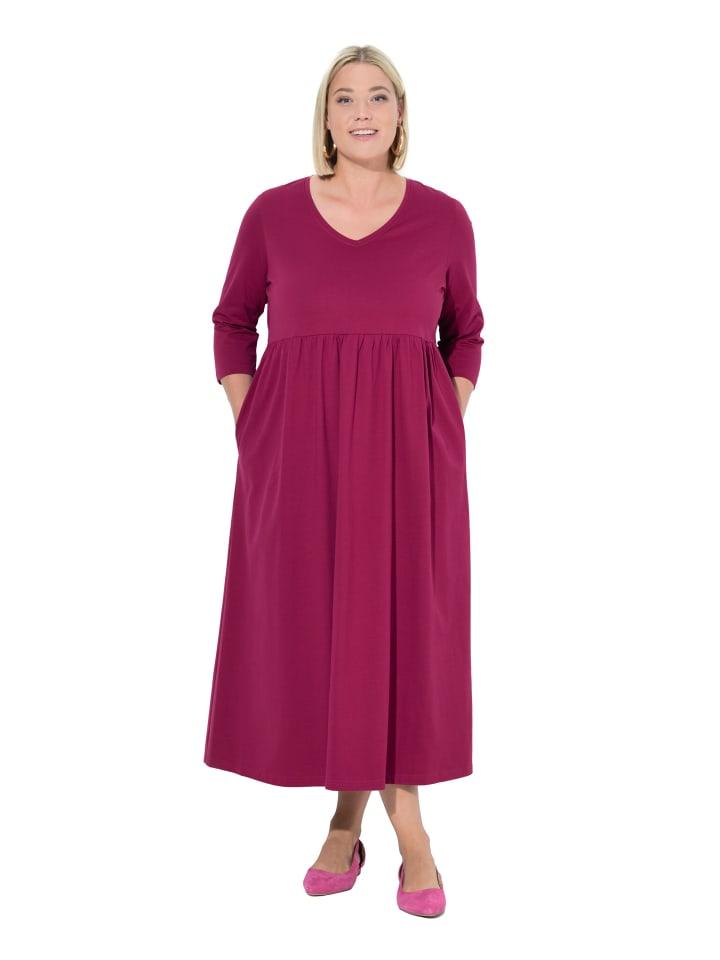 Платье из джерси, А-силуэта. Удобный крой, V-образный вырез и эластичный шов в стиле ампир. Рукава длиной 3/4, карманы в боковых швах. Внешний материал: 100% хлопок.