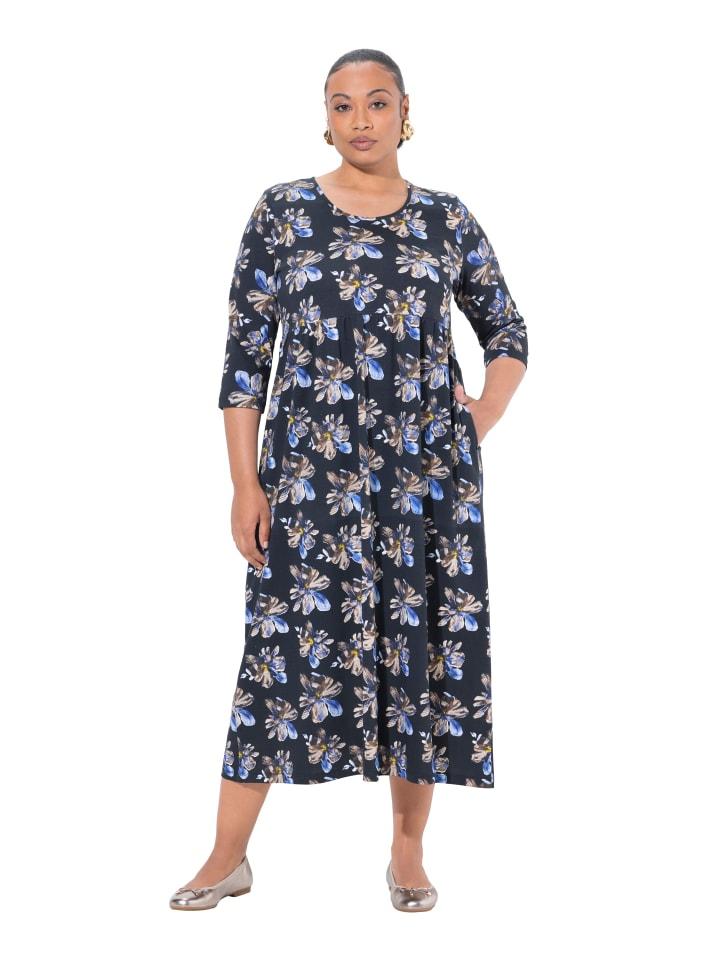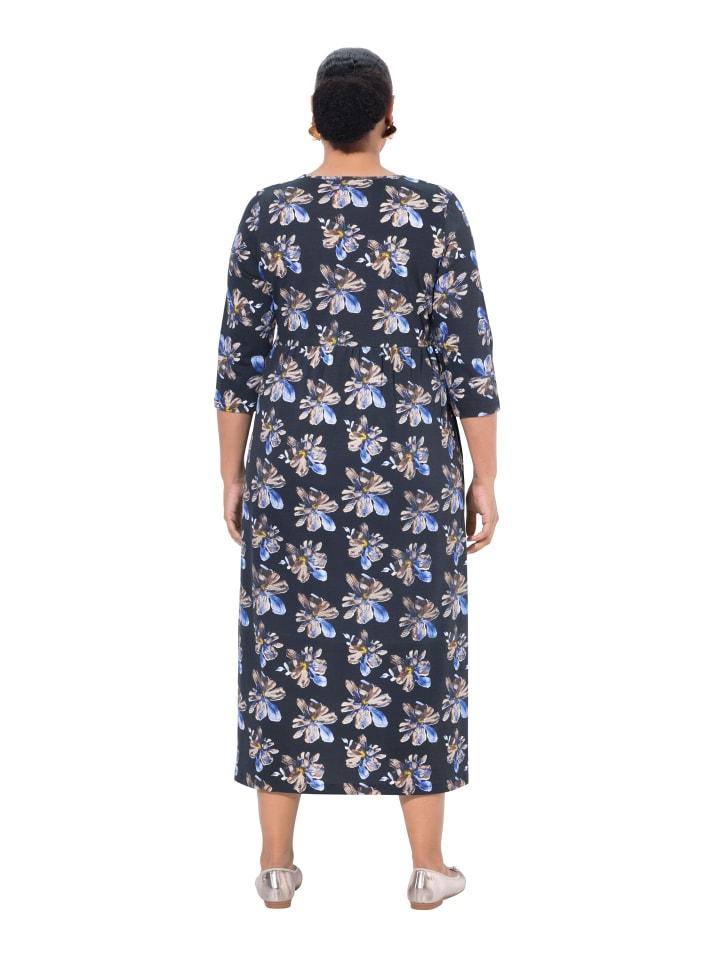 Платье макси из джерси, А-силуэта, с цветочным узором. Удобная посадка, круглый вырез горловины и эластичный шов в стиле ампир. Рукава длиной 3/4, карманы в боковых швах. Внешний материал: 100% хлопок.