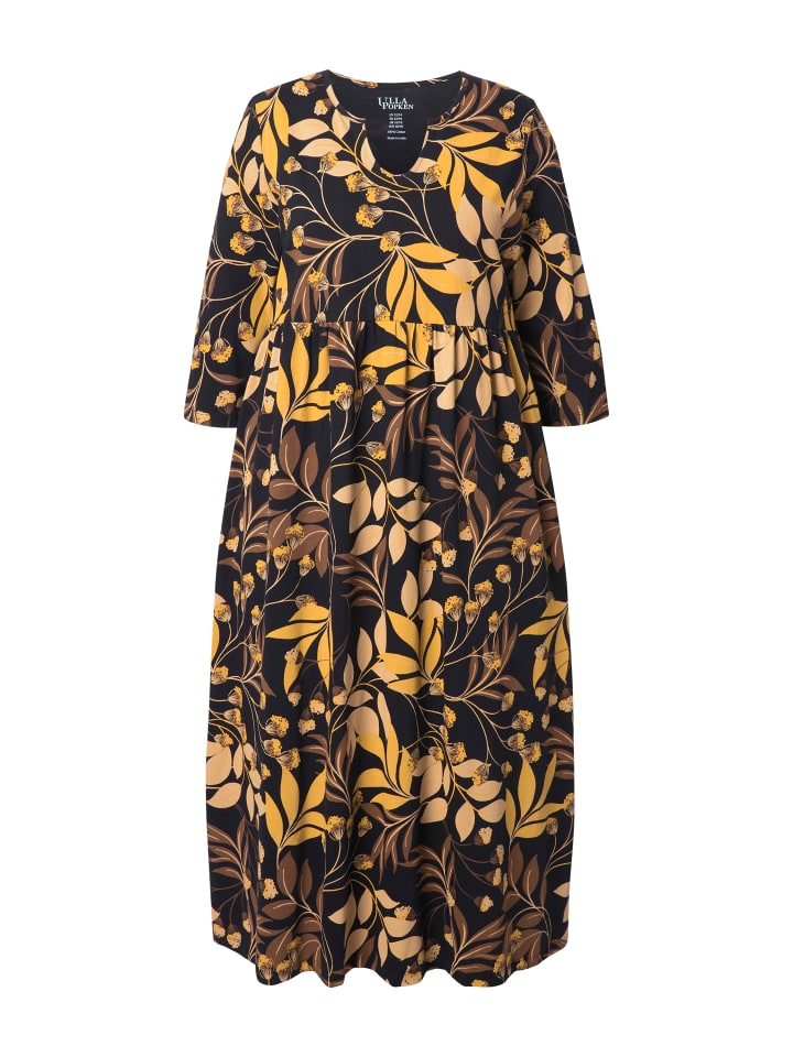 Платье макси из джерси, А-силуэта, с рисунком. Удобная посадка, туникообразный вырез и эластичный шов в стиле ампир. Рукава длиной 3/4, карманы в боковых швах. Внешний материал: 100% хлопок.