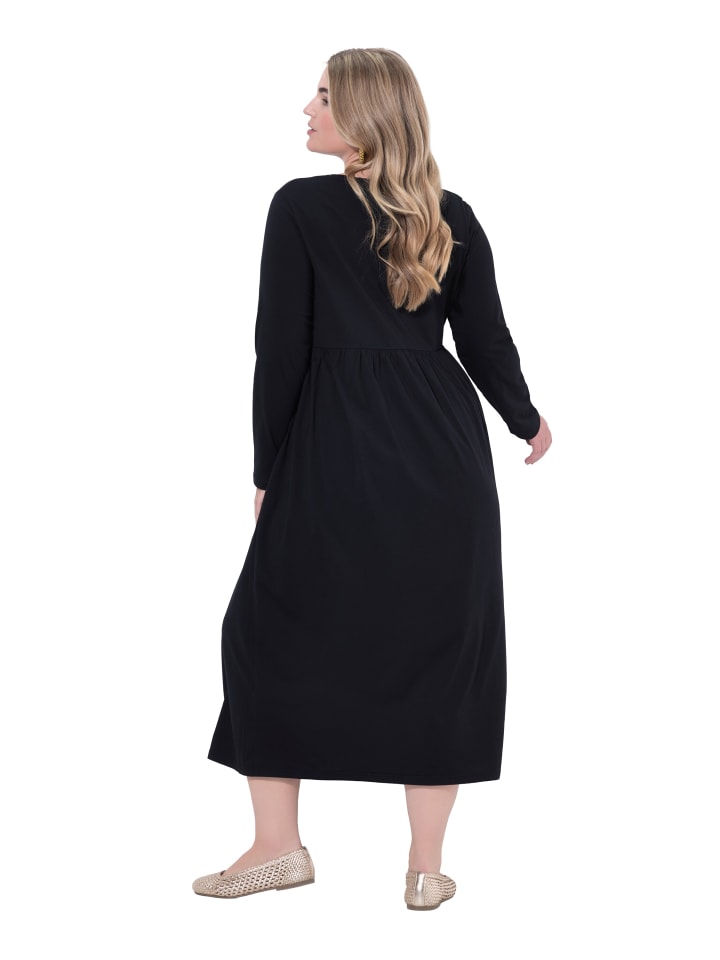 Платье макси из джерси, А-силуэта, из чистого хлопка. С V-образным вырезом, эластичным швом под грудью и длинными рукавами.