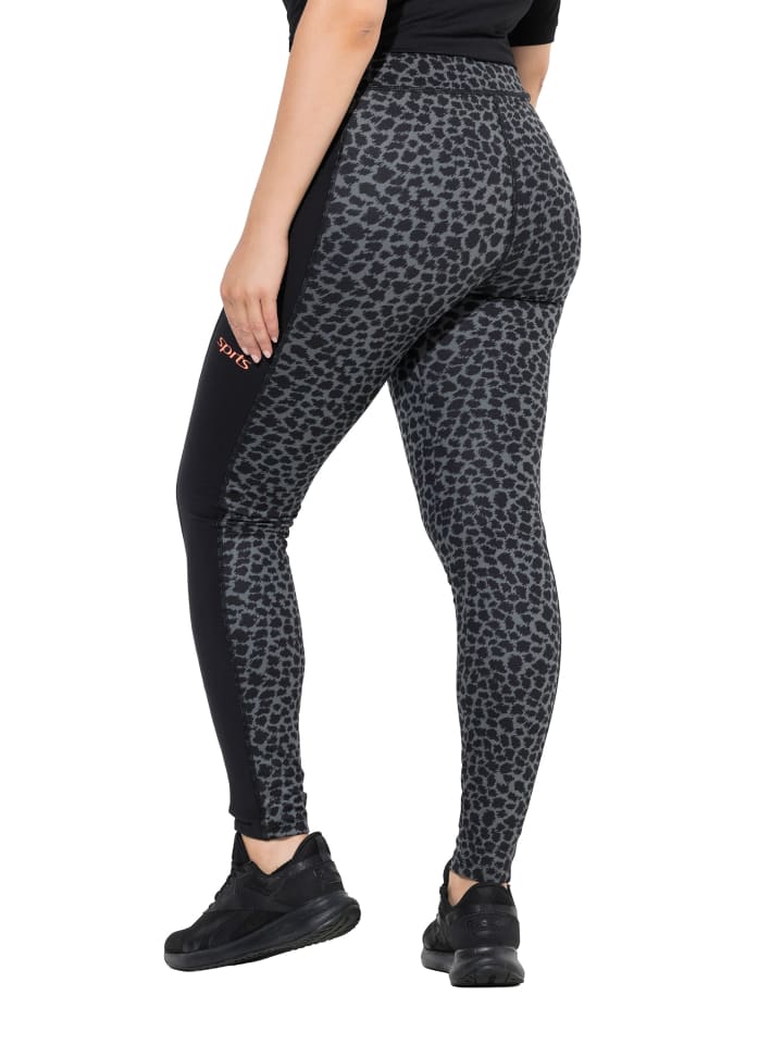 Спортивные леггинсы с высокой талией, леопардовым принтом и черной полоской по бокам. Высококачественная эластичная ткань интерлок, дышащая и быстросохнущая благодаря технологии QuickDry. Два кармана. Изготовлены из переработанного полиэстера. Внешний материал: 76% другие материалы, 24% эластан.