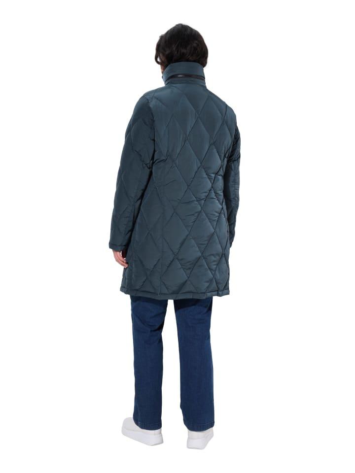 Стеганое пальто А-силуэта из водоотталкивающей ткани с теплым пуховым утеплителем. Практичные особенности: капюшон, пристегивающийся к воротнику-стойке, двухсторонняя молния, 2 кармана на кнопках и теплая флисовая подкладка. Подкладка по всей длине, карман и ремень для переноски куртки.