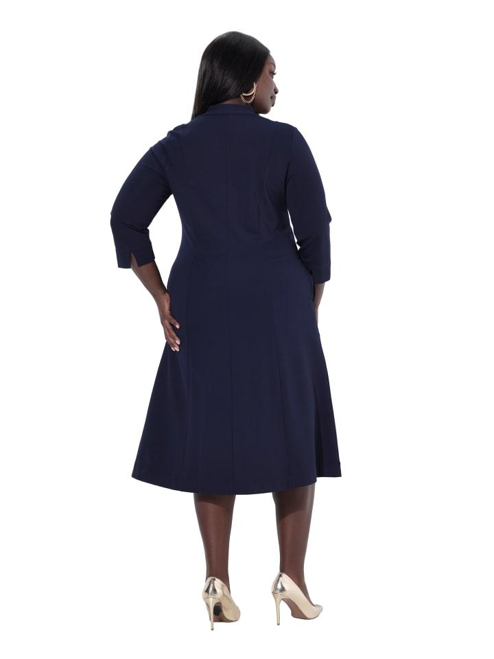 Платье миди А-силуэта из высококачественного трикотажа Punto di Roma с расклешенным воротником и V-образным вырезом. Карманы в боковых швах и расклешенные рукава длиной 3/4 с разрезами. Состав: 63% вискоза, 32% полиамид, 5% эластан.