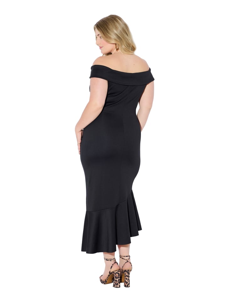 Платье макси Скуба, удобное, без рукавов, с вырезом Кармен. Женственная драпировка на талии, асимметричный волан по низу.