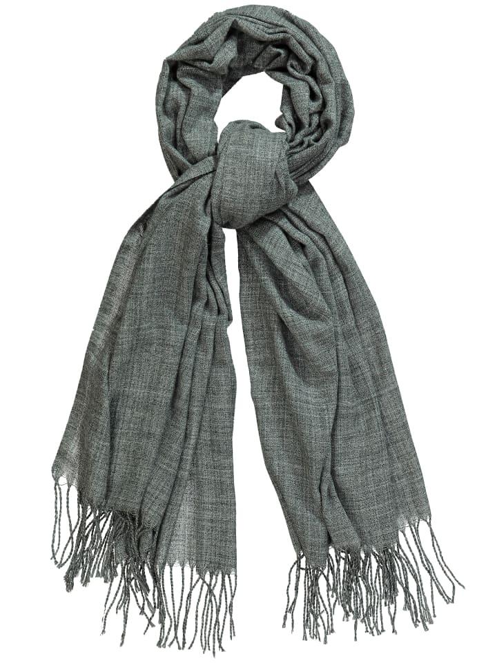 Шарф из тонкой меланжевой ткани с бахромой по краям.