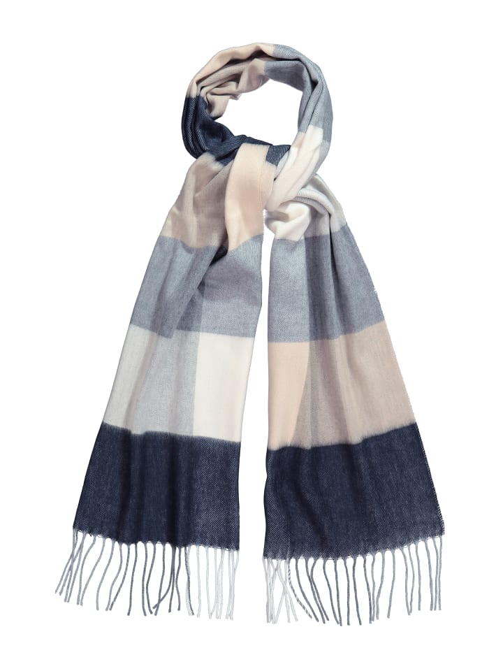 Клетчатый шарф, приятный, мягкий и теплый, с бахромой.