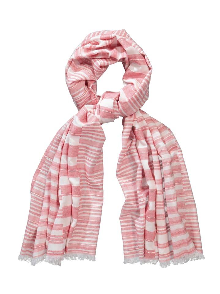 Шарф из приятного мягкого хлопка с современной полосатой текстурой и легким металлическим эффектом - каждый раз новый образ. Большой, универсальный формат, подходит ко многим нарядам.
