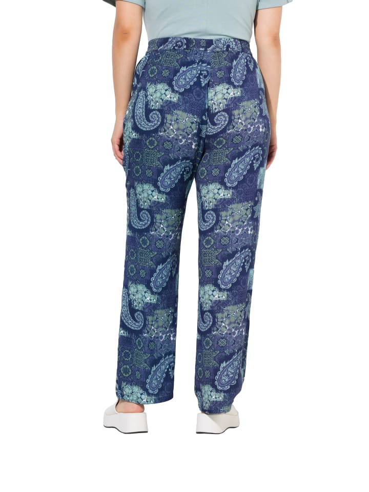 Широкие брюки прямого кроя из мягкого вискозного крепа с узором пейсли. Эластичный пояс, боковые карманы.