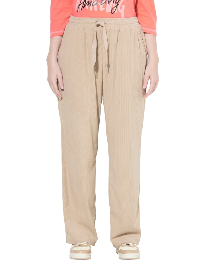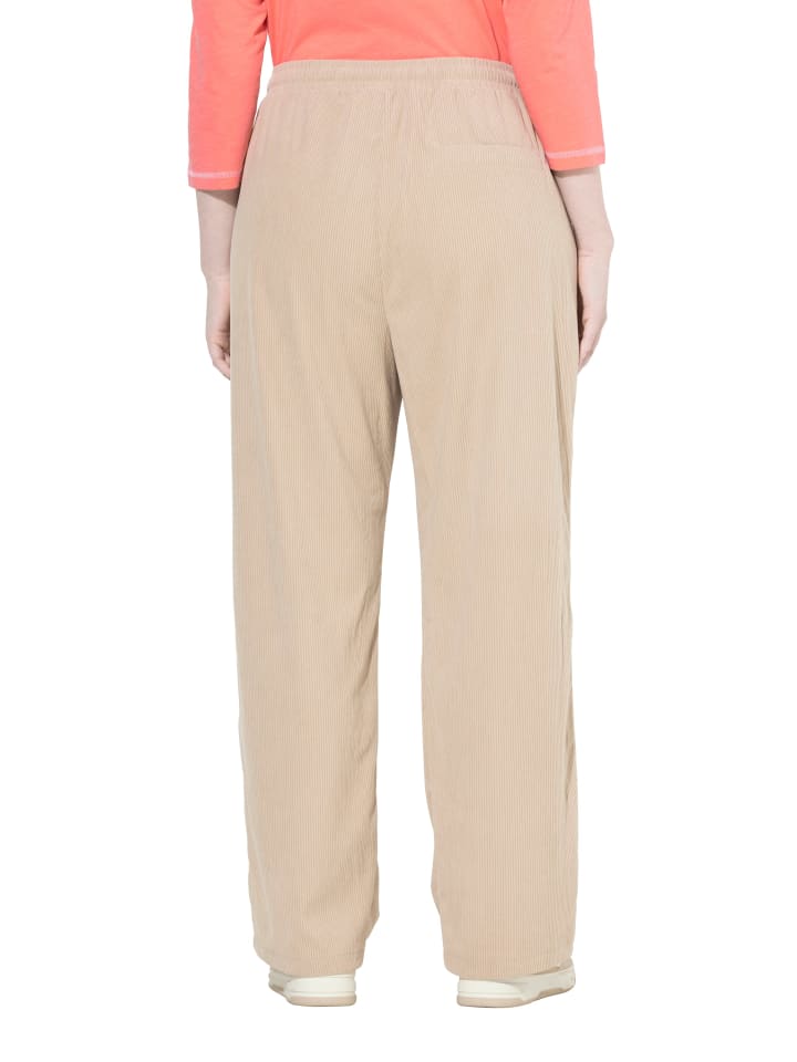 Брюки из розового вельвета, свободные, прямого кроя. Изготовлены из мягкого эластичного вельвета с эластичным поясом, завязывающимся поясом и боковыми карманами.