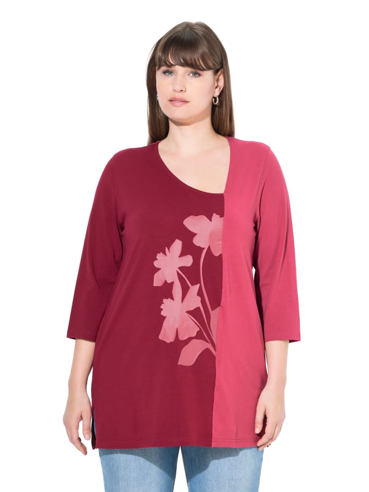 Футболка из органического хлопка с цветовыми блоками и цветочным мотивом тени. Удобный классический крой с асимметричным V-образным вырезом. Рукава длиной 3/4 и боковые разрезы для еще большего комфорта. Органический; сертифицирован ECOCERT Greenlife, номер лицензии: 152026. Внешний материал: 95% хлопок, 5% эластан.