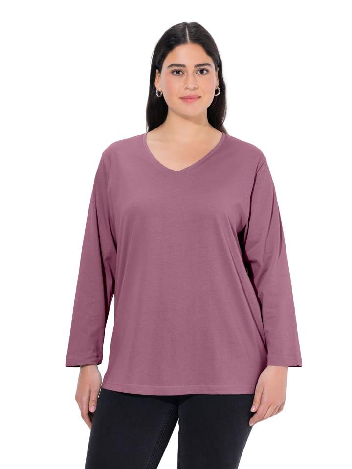 Футболка с длинными рукавами и V-образным вырезом. Удобный свободный крой.