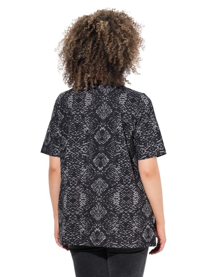 Футболка А-силуэта из мягкого трикотажа с принтом в виде змеи. V-образный вырез с окантовкой и короткие рукава.