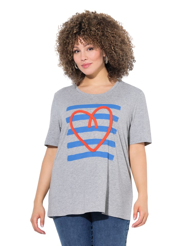 Футболка классического кроя из мягкого трикотажа. Полосатый мотив с красным шнурком в форме сердца. Круглый вырез, слегка спущенная линия плеча и короткие рукава. Состав: 90% хлопок, 10% вискоза.
