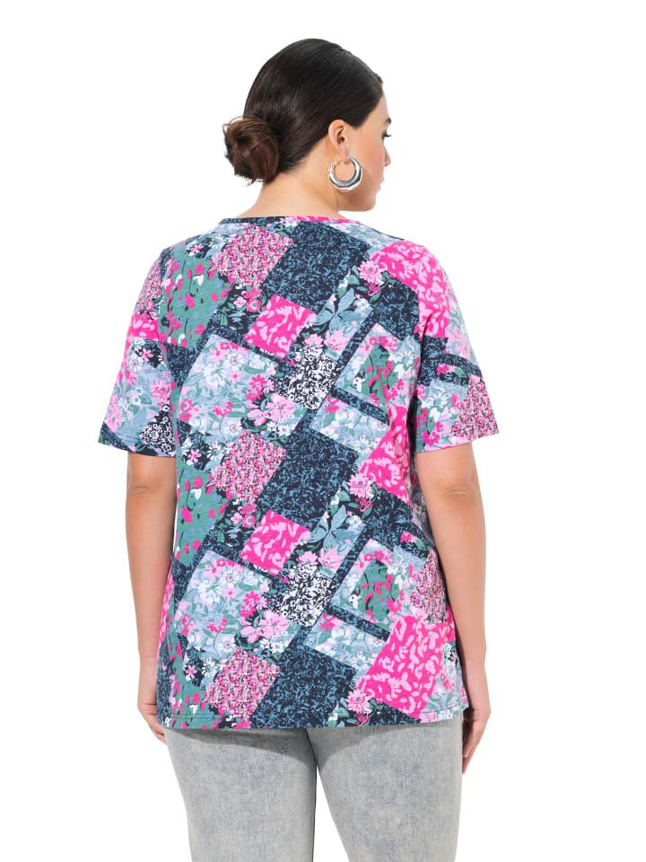 Футболка А-силуэта из мягкого трикотажного полотна с цветочным принтом. Небольшие декоративные складки под вырезом сердечком и короткие рукава.