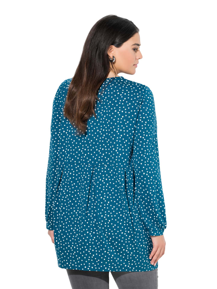 Футболка А-силуэта из мягкого джерси купромикс с графическим рисунком. Квадратный вырез, изогнутый горизонтальный шов с декоративными складками и длинные рукава с эластичными манжетами.