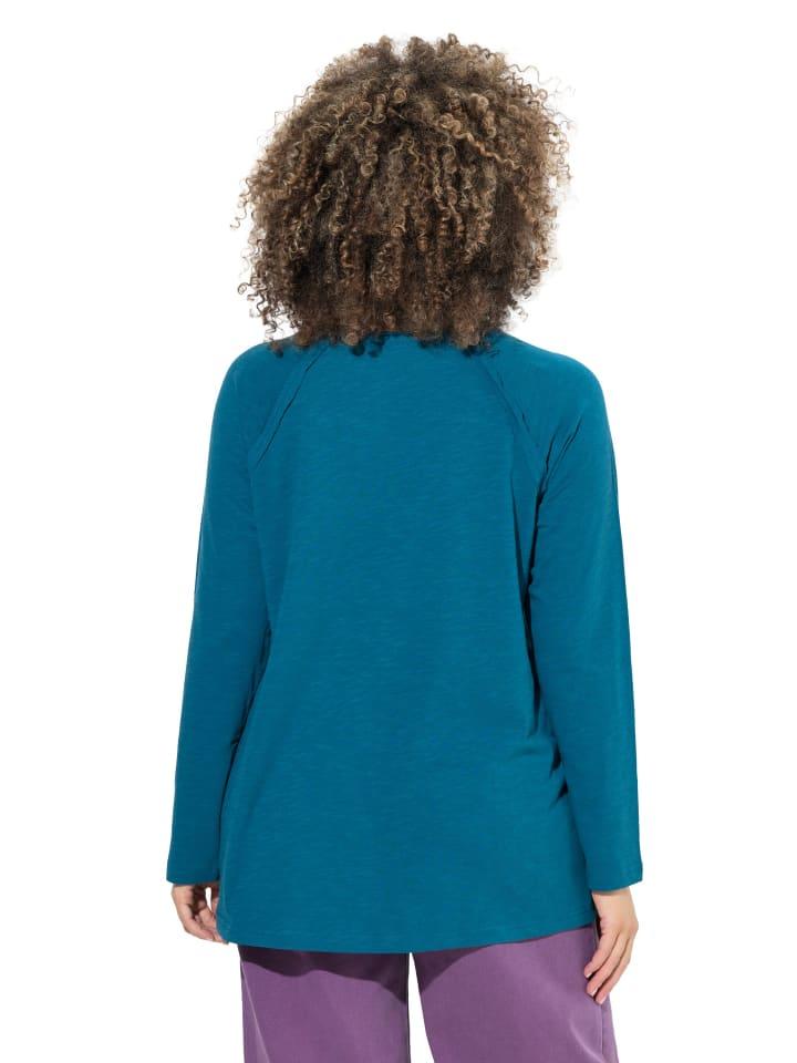 Рубашка А-силуэта из мягкого трикотажа с тонкой текстурой и декоративным мотивом спереди. Модные подвернутые края. Круглый вырез, длинные рукава реглан. Внешний материал: 100% хлопок.