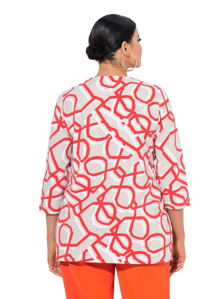 Футболка удобного кроя из мягкого трикотажа с графическим рисунком и эластичной текстурой. Вырез горловины туника, рукава 3/4. Состав: 95% хлопок, 5% эластан.