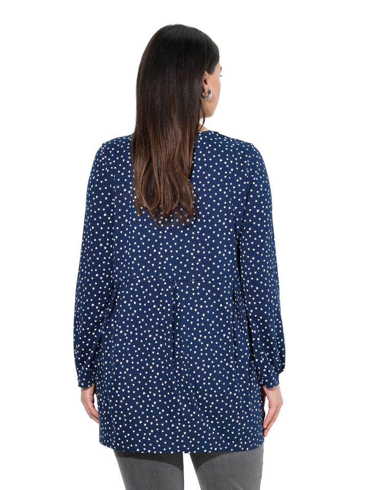 Футболка А-силуэта из мягкого джерси купромикс с графическим рисунком. Квадратный вырез, изогнутый горизонтальный шов с декоративными складками и длинные рукава с эластичными манжетами.