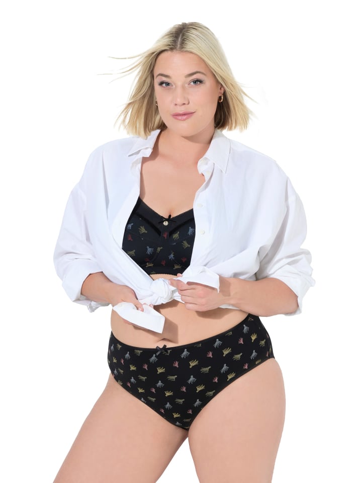Трусики-миди в упаковке по 5 штук. Проверенная посадка благодаря узору и цвету.