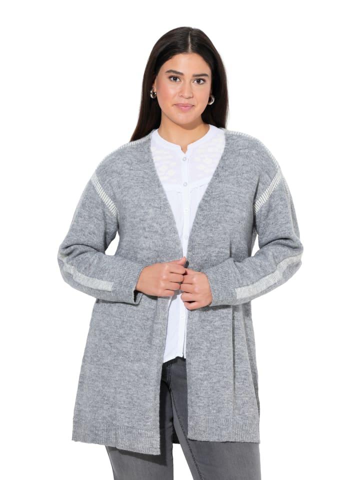 Длинный кардиган, удлиненный, свободного кроя, из мягкой тонкой вязки с модными декоративными швами. Свободный крой, спущенная линия плеча, длинные рукава. Манжеты на резинке.