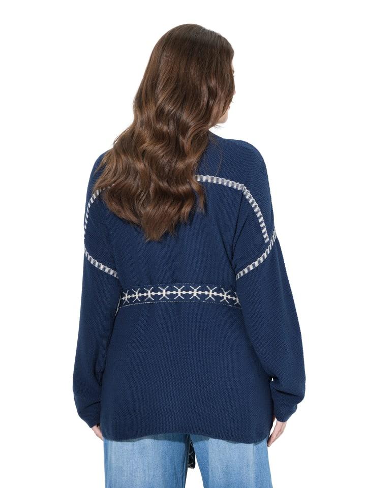 Кардиган свободного кроя из мягкой фактурной пряжи с декоративными полосками. Свободный крой с поясом на талии - силуэт вашей мечты. Длинные рукава, гладкий край.