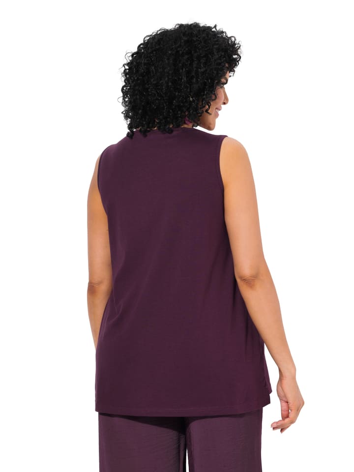 Топ А-силуэта без рукавов с вырезом сердечком и небольшим вырезом. Разрезы по бокам для большего комфорта.
