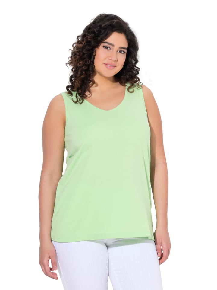 Топ с V-образным вырезом, классический крой. Женственный топ, слегка зауженный и укороченный, с V-образным вырезом и широкими бретелями с кантом. Боковые разрезы.
