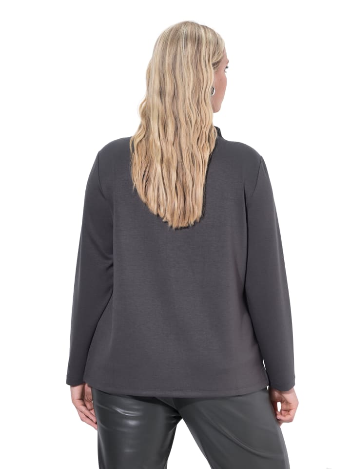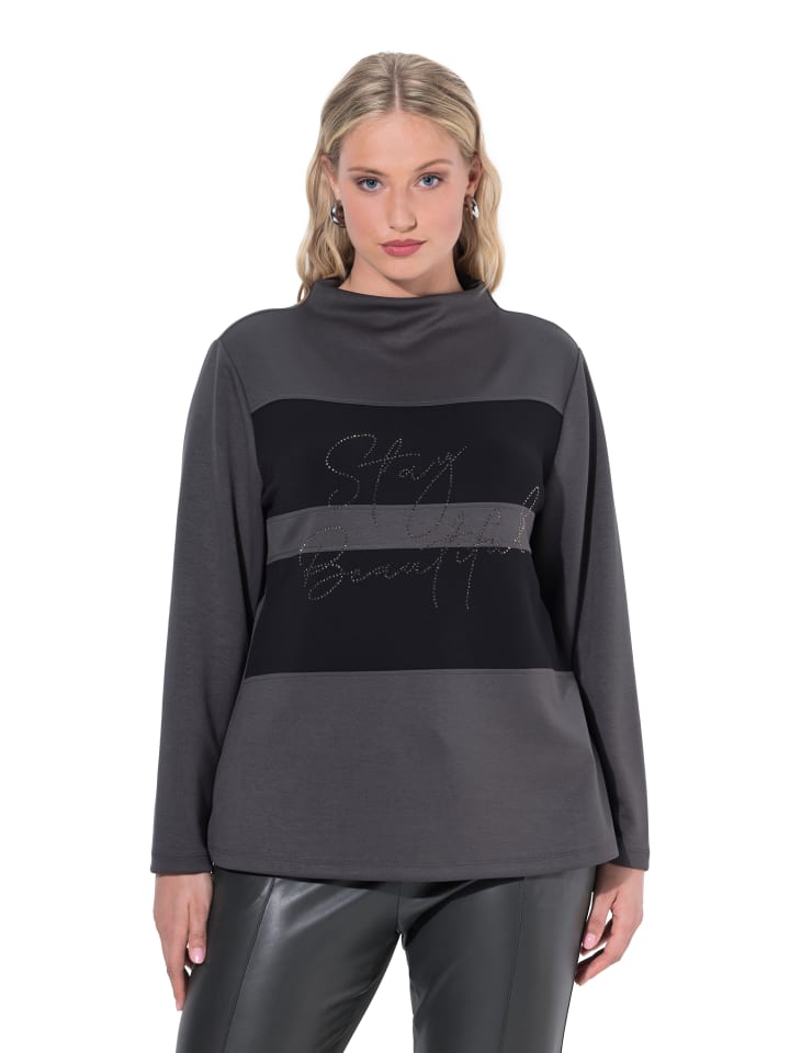 Свитшот слегка свободного кроя из очень мягкого и гладкого трикотажа. С широкими полосками и блестящими надписями. Широкий воротник-стойка, спущенная линия плеча и длинные рукава. Эластичные манжеты.