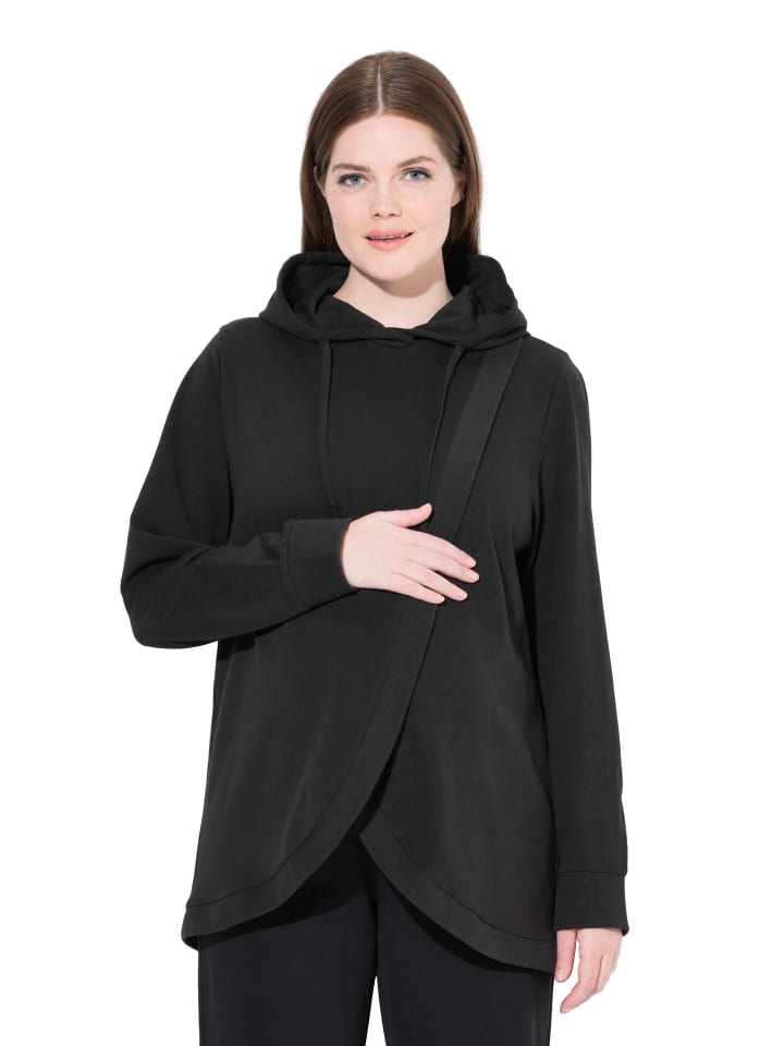 Худи из супермягкой трикотажной ткани с современной функцией кормления. Двойная передняя часть - грудь доступна во время кормления без переодевания и остается невидимой. Верхний слой защищает малыша. Удобный А-силуэт с широким подолом, капюшон на завязке, длинные рукава с манжетами на резинке. Низ сзади слегка закруглен и всегда достаточно длинный.