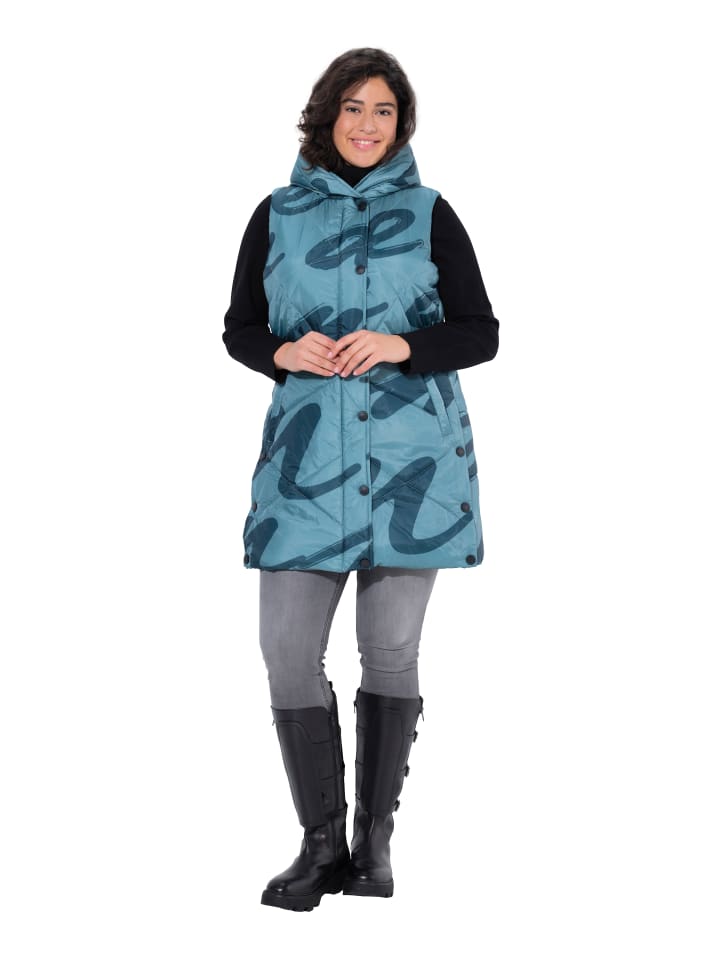 Длинный стеганый жилет А-силуэта с рисунком. Водоотталкивающие свойства благодаря пропитке Bionic Finish Eco без фтора. Современная ромбовидная стежок с пуховым наполнителем. Капюшон, потайная молния, два незаметных кармана в швах на кнопках. Длинные боковые разрезы на кнопках для еще большего комфорта. Подкладка с тонким карманом на молнии.
