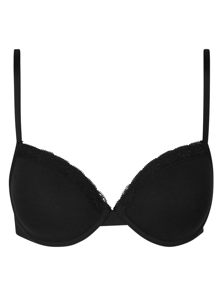 Бюстгальтер с подкладкой для повседневной носки. Благодаря облегающему крою и облегающей посадке он служит надежным поддерживающим слоем. Изготовленный из легкого эластичного хлопкового трикотажа, он обеспечивает комфорт и легкую поддержку благодаря формованным чашкам и легкой подкладке, которая корректирует силуэт. Узкие бретельки создают четкий вырез, а нежная кружевная отделка в верхней части чашечек добавляет женственности. Бюстгальтер отличается лаконичным дизайном с формованными чашками и гладкой зоной под грудью, которая едва заметна под одеждой, что делает его подходящим как для повседневной носки, так и в качестве незаметной основы под облегающим топом.