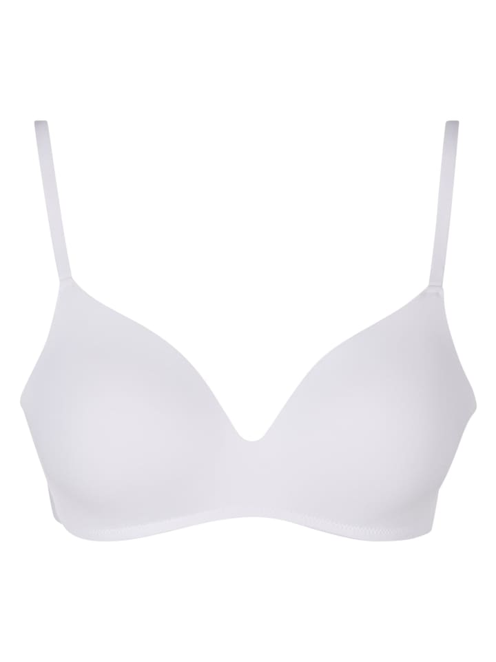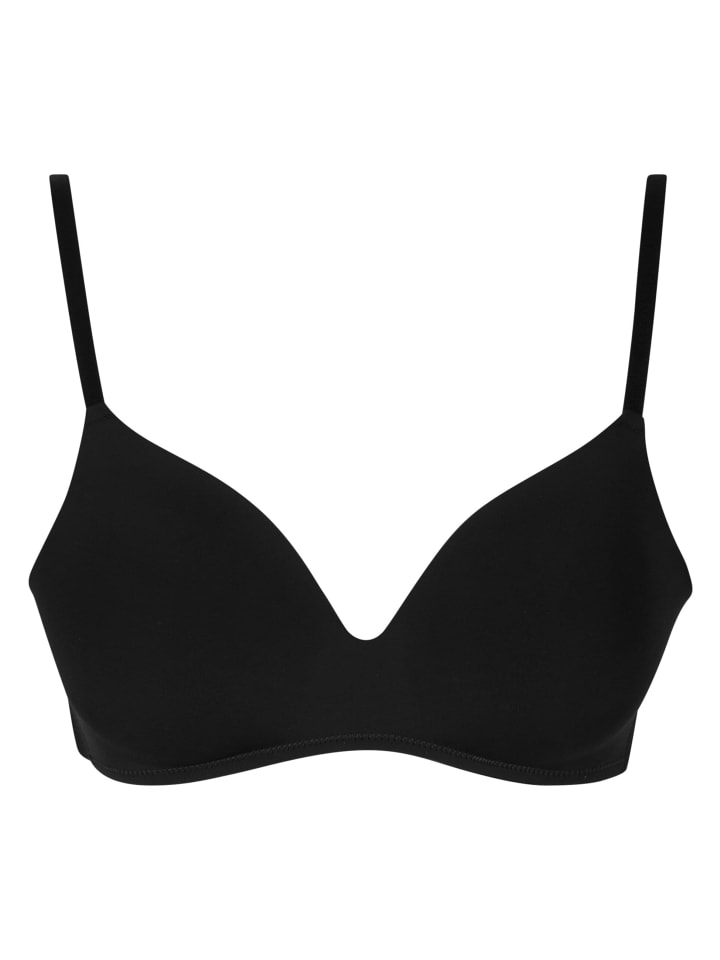 Бюстгальтер с подкладками, облегающий, плотно облегающий силуэт, создающий плавный силуэт под обтягивающей одеждой, что делает его надежным повседневным слоем одежды. Легкая ткань основовязаного нейлона с эластаном обеспечивает эластичную поддержку и плотное прилегание, создавая четкую форму благодаря мягким формованным чашкам с подкладками. Тонкие бретели и низкий V-образный вырез подчеркивают минималистичный дизайн, а эластичная лента под грудью обеспечивает поддержку, не добавляя объема. Гладкая поверхность чашек уменьшает складки под топом и облегчает комбинирование, делая этот бюстгальтер практичным как для повседневной носки, так и для создания облегающих образов.