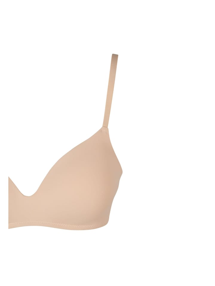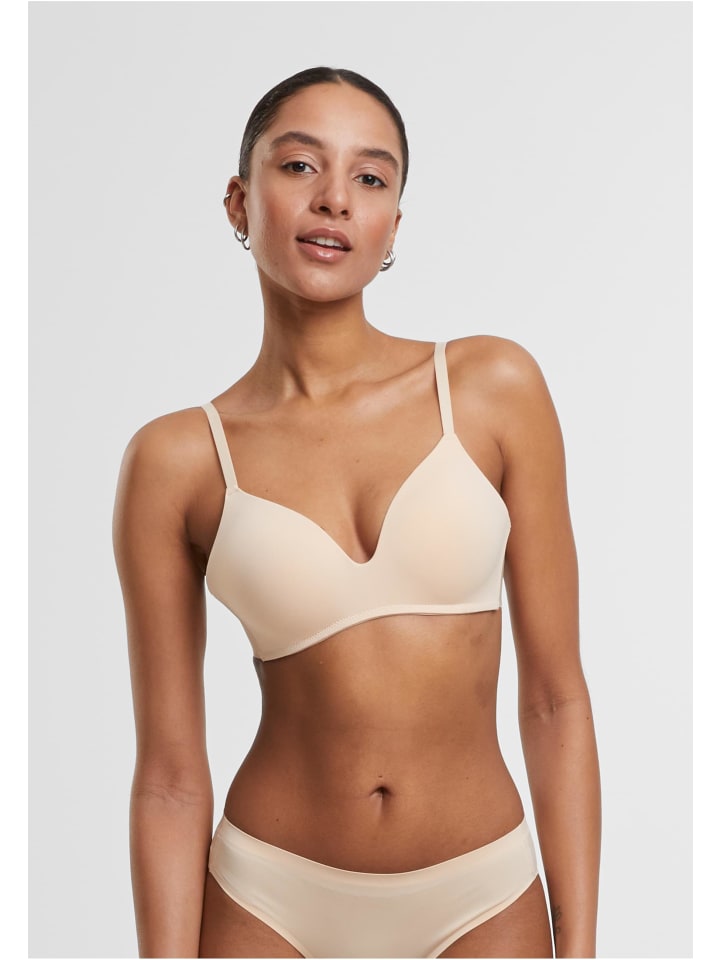 Бюстгальтер с подкладками, облегающий, плотно облегающий силуэт, создающий плавный силуэт под обтягивающей одеждой, что делает его надежным повседневным слоем одежды. Легкая ткань основовязаного нейлона с эластаном обеспечивает эластичную поддержку и плотное прилегание, создавая четкую форму благодаря мягким формованным чашкам с подкладками. Тонкие бретели и низкий V-образный вырез подчеркивают минималистичный дизайн, а эластичная лента под грудью обеспечивает поддержку, не добавляя объема. Гладкая поверхность чашек уменьшает складки под топом и облегчает комбинирование, делая этот бюстгальтер практичным как для повседневной носки, так и для создания облегающих образов.