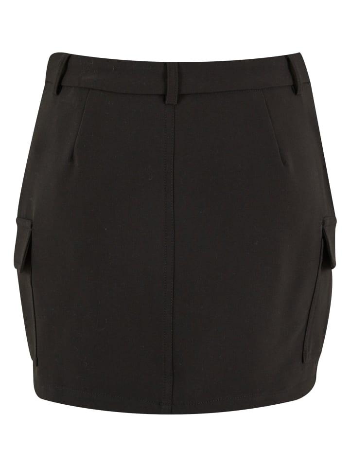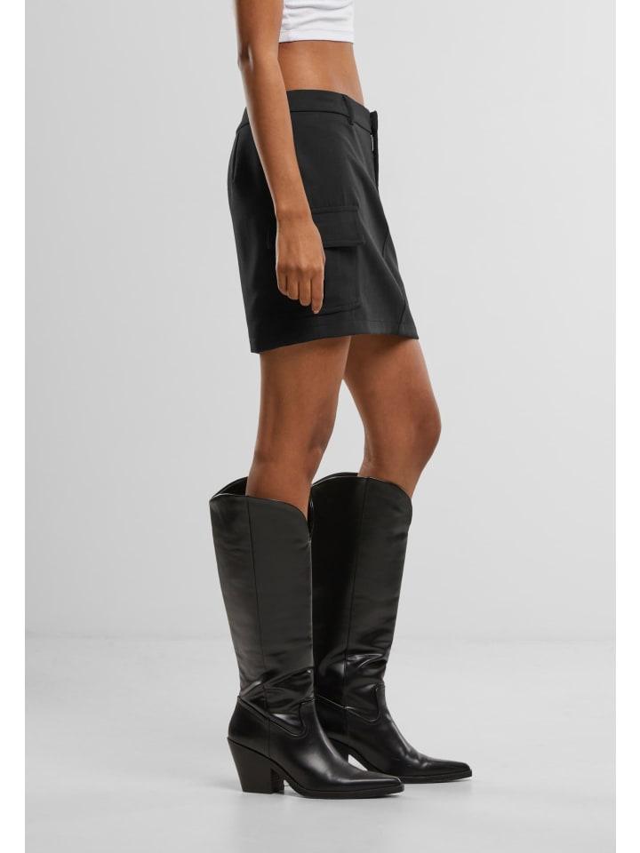 Короткая юбка средней посадки для повседневной носки, выполненная в классическом крое, создающем четкий силуэт и предлагающем разнообразные варианты комбинирования. Гладкая, слегка эластичная смесь полиэстера и вискозы с эластаном обеспечивает свободу движений и сохраняет форму. Видимые детали, такие как накладные карманы по бокам, шлевки для ремня и прямой подол, добавляют функциональные акценты, а потайная молния и застежка на пуговицы аккуратно завершают переднюю часть. Эта короткая юбка отличается четкими линиями и практичными элементами, что делает ее идеальным вариантом для создания непринужденного, но структурированного повседневного образа. Она легко сочетается с ботинками или спортивной обувью.