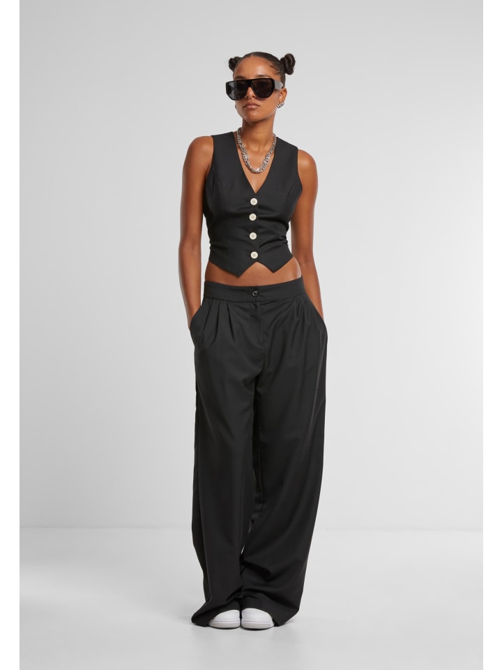 Жилет для повседневных образов, идеально подходящий в качестве универсального повседневного слоя с четким силуэтом. Изготовленный из легкой ткани из смеси полиэстера и вискозы, структурированной и сохраняющей форму, он имеет классический крой с приталенной талией для женственной посадки. V-образный вырез и видимые пуговицы спереди подчеркивают классический крой, а узкие проймы и прямой подол сохраняют лаконичность дизайна. Благодаря минималистичным линиям жилет можно сочетать как с элегантными брюками, так и с другими слоями одежды, создавая элегантный и простой слой для перемен.