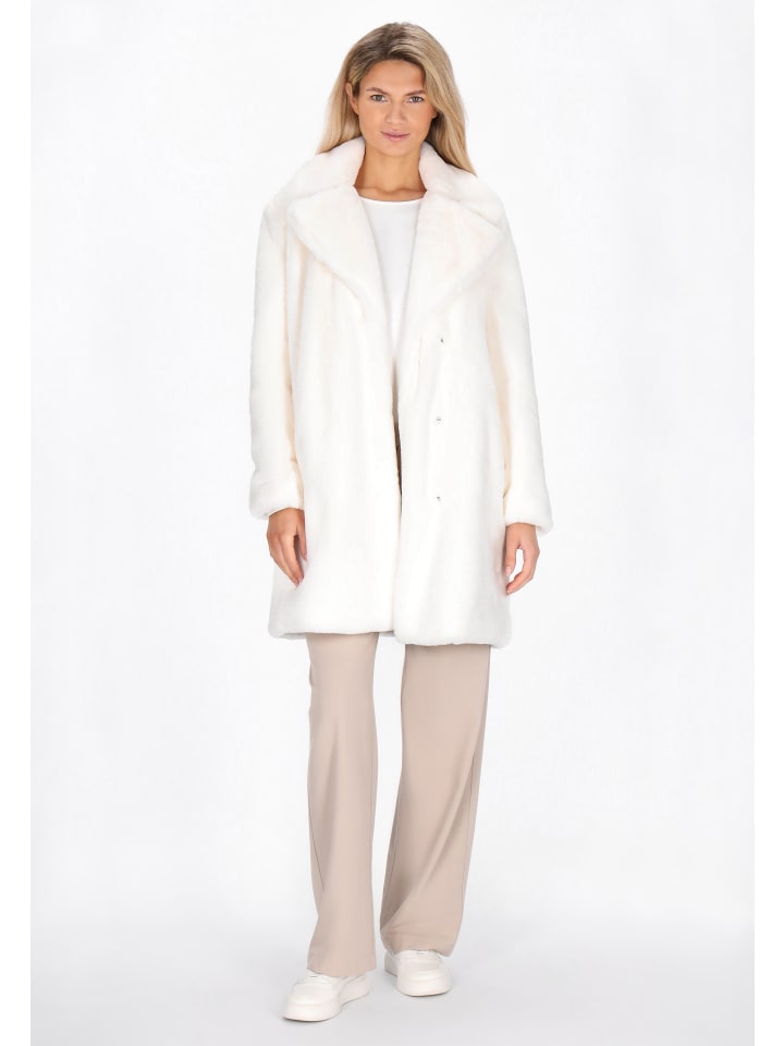 Это стильное пальто свободного кроя из коллекции Outerwear - идеальное сочетание комфорта и элегантности для холодных дней. Изготовленное из мягкого искусственного меха, оно обеспечивает приятное тепло и исключительный комфорт. Классический воротник с лацканами, длинные рукава и практичная застежка на кнопки придают изделию вневременной характер. Гладкий, однотонный узор делает пальто идеальным дополнением к повседневным и неформальным нарядам. Это универсальная вещь, которая добавит нотку шика любому осенне-зимнему образу.