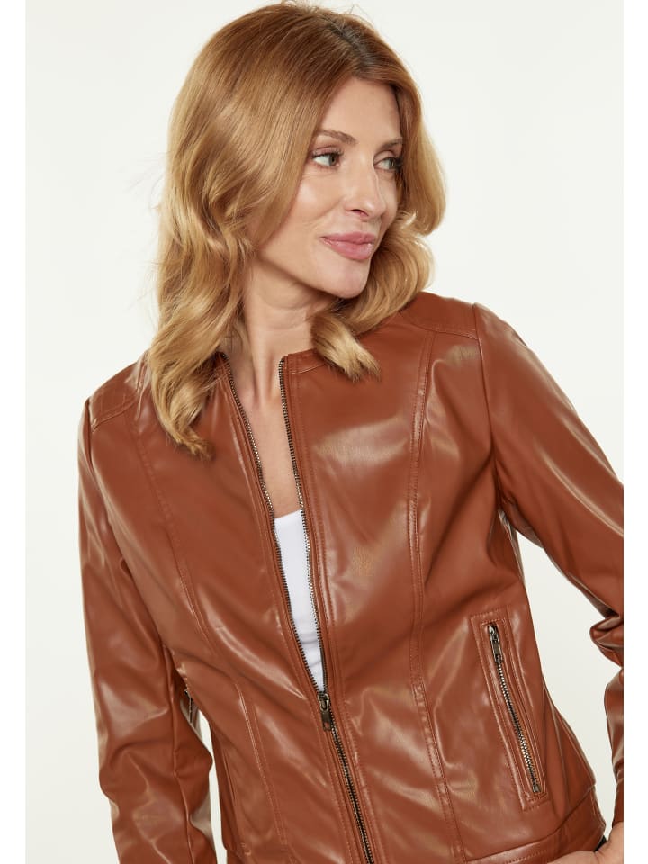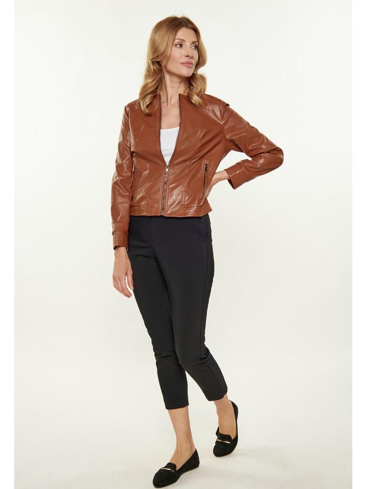 Подчеркните свой повседневный стиль с этой шикарной курткой. Куртка прямого кроя с круглым вырезом и рукавами 7/8 легко застегивается на молнию, создавая элегантный и современный образ. Функциональные карманы на молнии и изящная строчка подчеркивают элегантный стиль. Эта универсальная модель из экокожи станет незаменимым дополнением к вашей коллекции верхней одежды, идеально подходящей для повседневных случаев с ноткой изысканности.