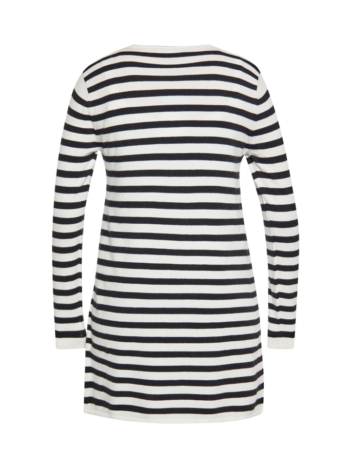 Подчеркните свой повседневный стиль с этим полосатым открытым кардиганом с элегантным горизонтальным узором. Ребристый вырез, подол и манжеты добавляют текстуру, а длинные рукава обеспечивают тепло и комфорт. Этот вязаный кардиган свободного кроя станет незаменимой вещью в вашем гардеробе. Разработанный совместно с SANIKA, этот кардиган сочетает в себе классический стиль и современный дизайн.