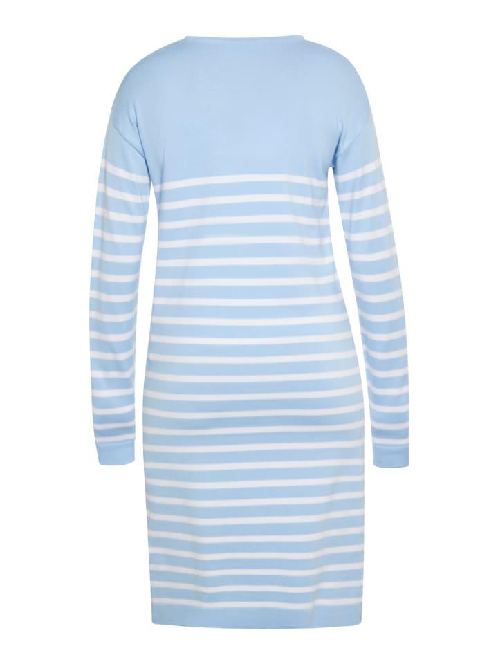 Очаровательное женское платье-свитер. Платье в полоску с длинными рукавами и круглым вырезом. Благодаря длине миди оно идеально подходит на каждый день. Это изделие, разработанное совместно с SANIKA, сочетает в себе классический стиль и современный дизайн.