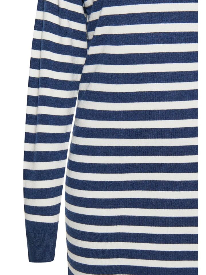 Очаровательное женское платье-свитер. Платье в полоску с длинными рукавами и круглым вырезом. Благодаря длине миди оно идеально подходит на каждый день. Это изделие, разработанное совместно с SANIKA, сочетает в себе классический стиль и современный дизайн.