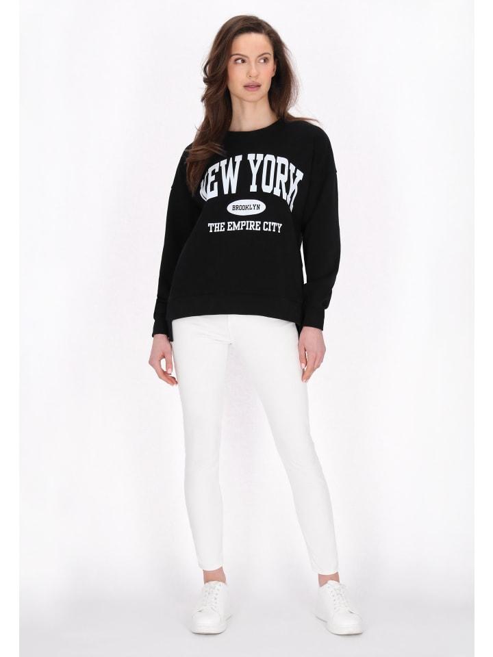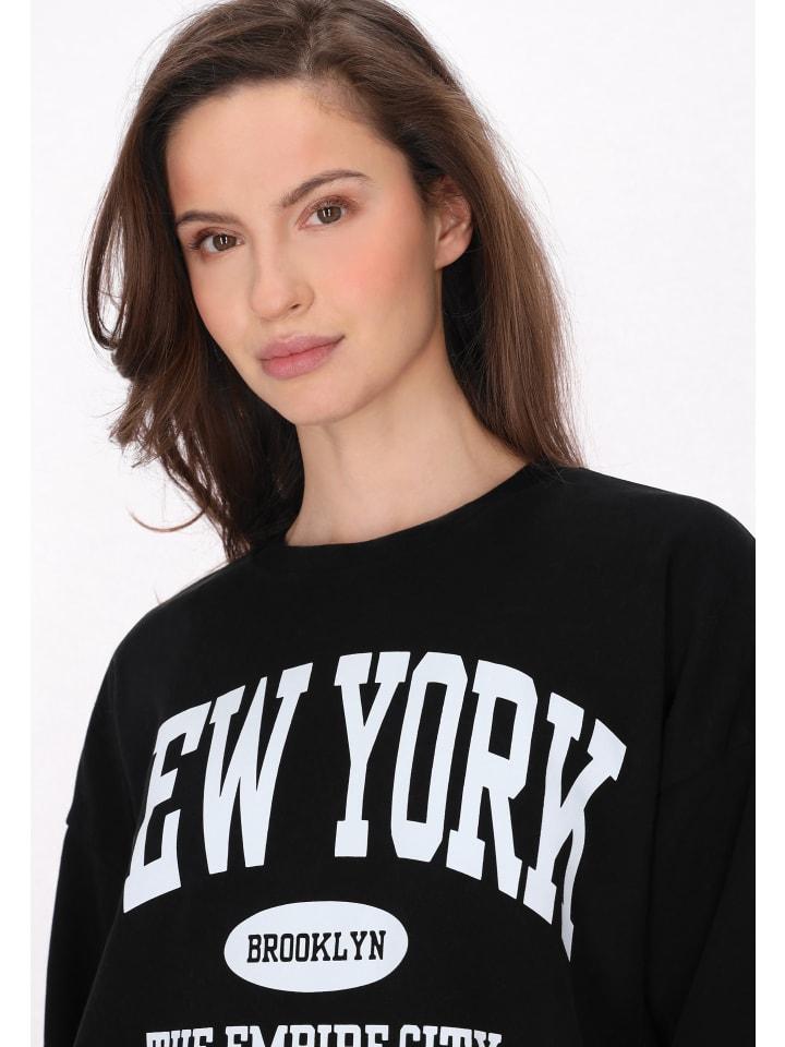 - Толстовка классического кроя с круглым вырезом и длинными рукавами