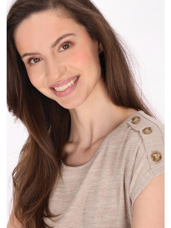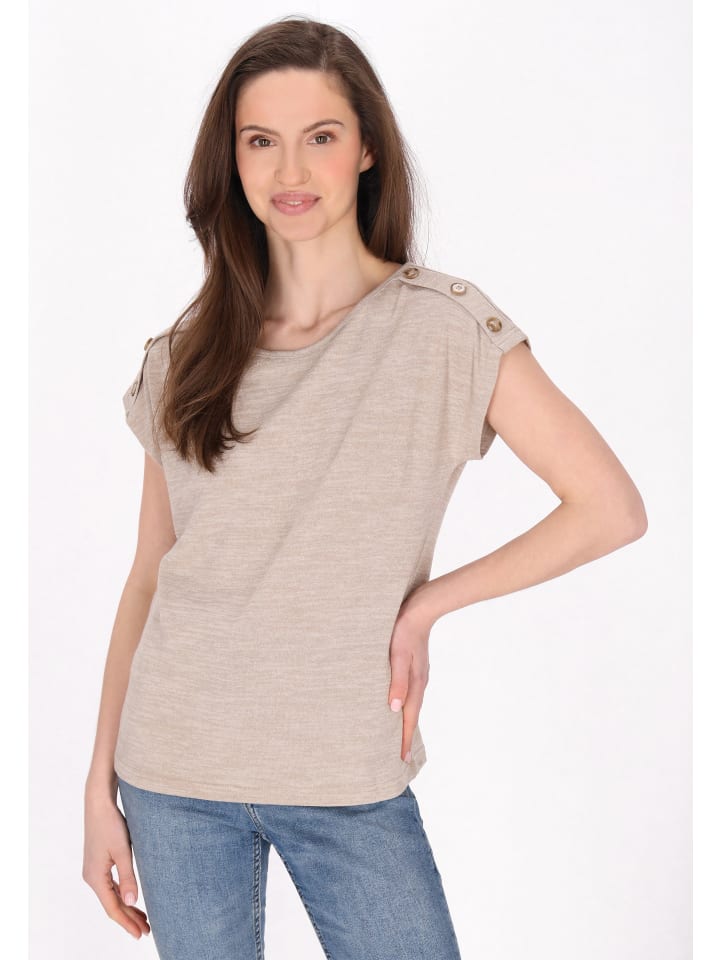 Подчеркните свой повседневный стиль этим стильным топом прямого кроя с шикарным вырезом лодочка. Короткие рукава-крылышки придают ему непринужденный вид, а декоративные пуговицы на плечах делают его еще привлекательнее. Эта простая модель из мягкого трикотажа идеально подходит для создания повседневных образов. Она входит в коллекцию Fashion Look.