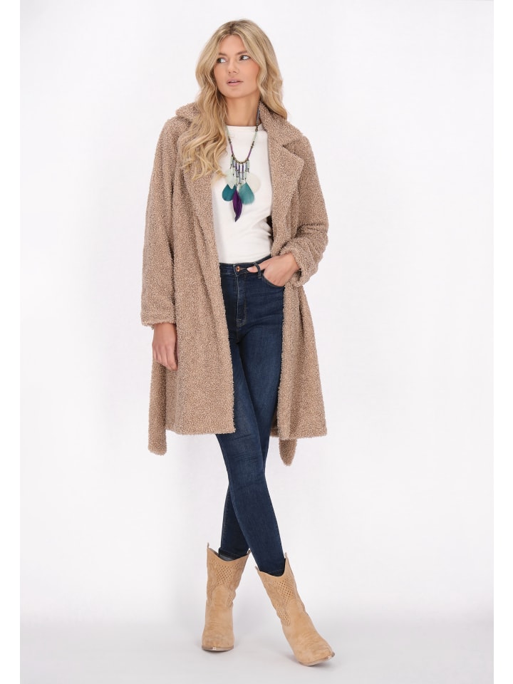 Насладитесь уютом и комфортом этого плюшевого пальто длиной до колена с широким воротником с отворотами для дополнительного тепла и длинными рукавами. Ремень позволяет регулировать посадку. Эта повседневная однотонная модель верхней одежды имеет классический вид и идеально подходит для зимнего образа.