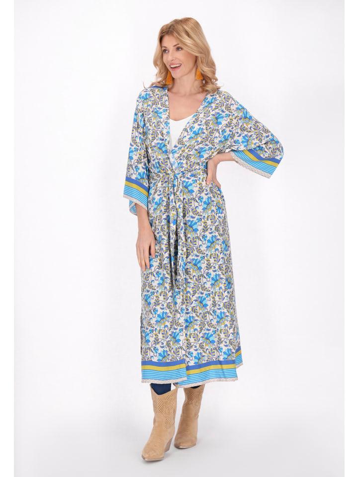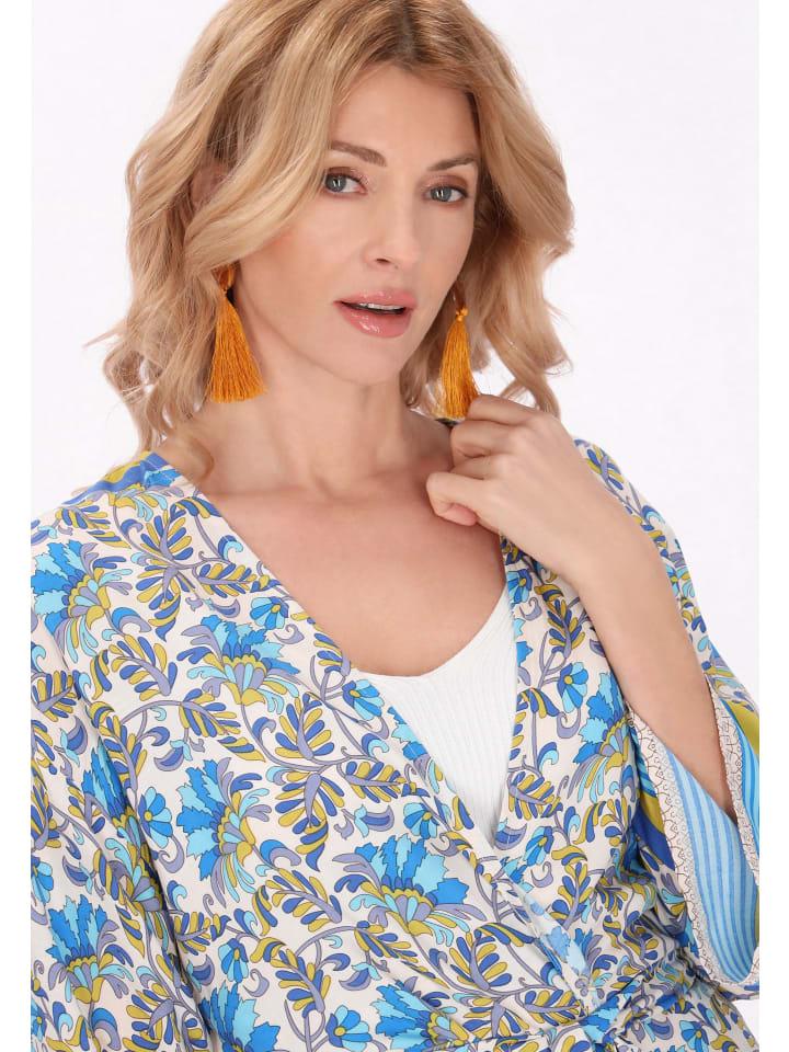 Представляем эффектную модель из нашей коллекции Fashion Look - кимоно, воплощающее очарование бохо благодаря своему свободному крою и длинному открытому переду. Это тканое изделие с рукавами кимоно и расклешенными рукавами 3/4 украшено замысловатыми цветочными принтами для праздничного образа. Сочетайте его с джинсами для создания повседневного или полуформального образа.