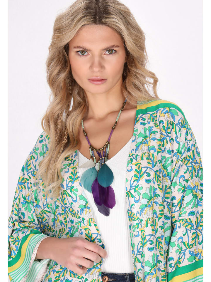 Представляем эффектную модель из нашей коллекции Fashion Look - кимоно, воплощающее очарование бохо благодаря своему свободному крою и длинному открытому переду. Это тканое изделие с рукавами кимоно и расклешенными рукавами 3/4 украшено замысловатыми цветочными принтами для праздничного образа. Сочетайте его с джинсами для создания повседневного или полуформального образа.
